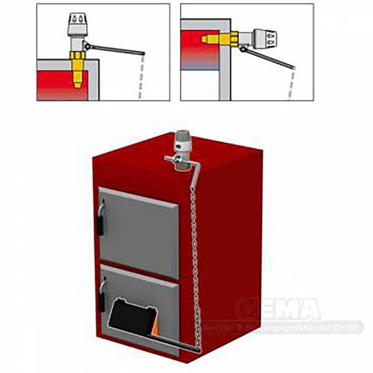 Temperatūrą šilumos generatoriuje matuoja integruotas termostatas. Termostatas prie tiekiamo oro sklendės prijungtas svirtimi ir grandine. Priklausomai nuo katilo tiekiamo srauto temperatūros, oro tiekimas reguliuojamas atidarant arba uždarant tiekiamo oro sklendę. Skirtas kietojo kuro ir kintamo degimo katilų tiekiamo oro sklendės reguliavimui pagal temperatūrą.